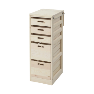 根野菜や非冷蔵の食品、雑貨をしまうのに便利なナチュラルテイストの木製引き出し式ストッカー。