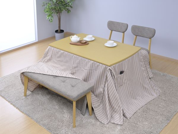 シンプルなデザインなので、布団を外せばダイニングテーブルとして、様々な場所で一年中使用できるこたつです♪ |
