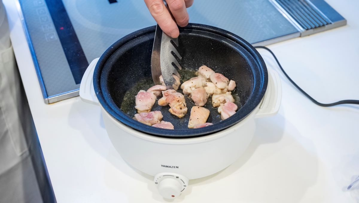 2.デキタテポットにオリーブオイルを入れてメモリ『強』で温める。
