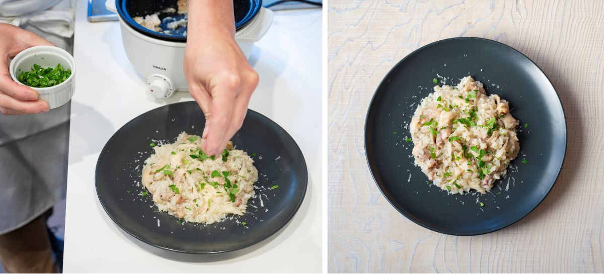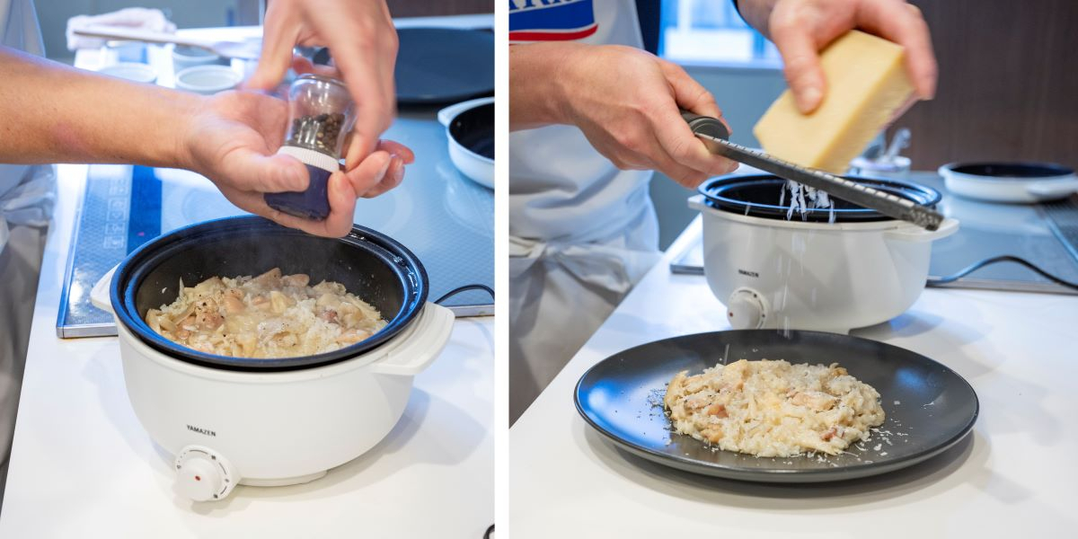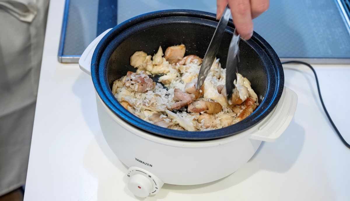 デキタテポットで作る鶏肉と舞茸のリゾット