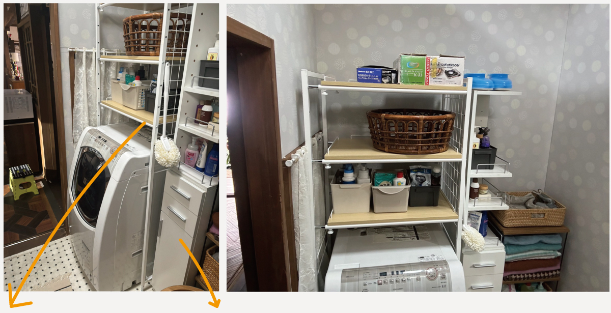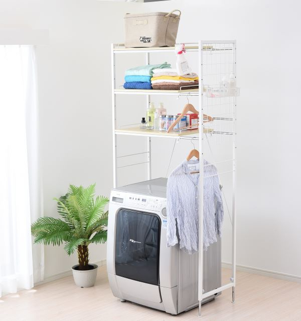 (セット写真左) 後から設置できるランドリーラック RAL-90 洗濯機上のデッドスペースを有効活用できるランドリーラックです。洗濯機に合わせて横幅を調整可能。 |