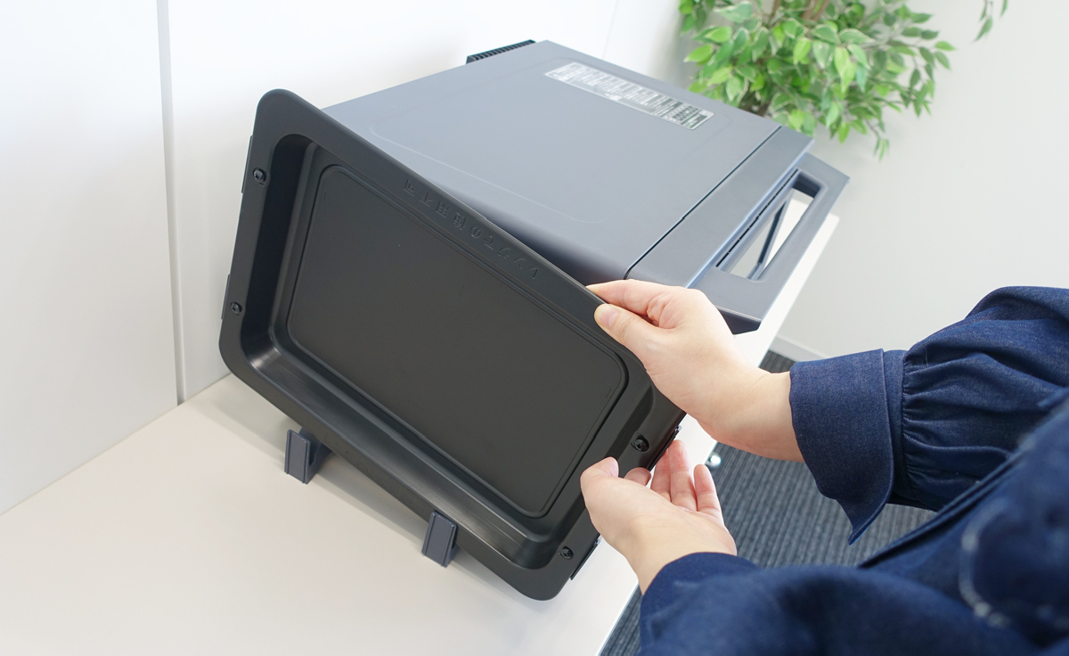 大きなお弁当やMサイズのピザも入る庫内容量18L。フラットテーブルだからお手入れも簡単。 |
