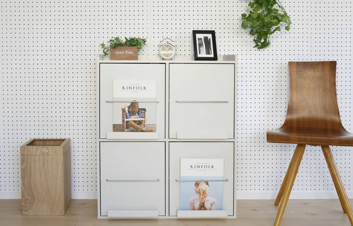 ディスプレイラックは、本棚と見せる収納を兼ね備えた家具です。通常の本棚とは異なり、表紙を前面に向けて収納できる構造が特徴で、特に絵本や雑誌などをおしゃれに並べたい方に最適です。『ディスプレイラック CDM-2X2D』なら、 子ども部屋やリビングで絵本などを収納するのに最適です。