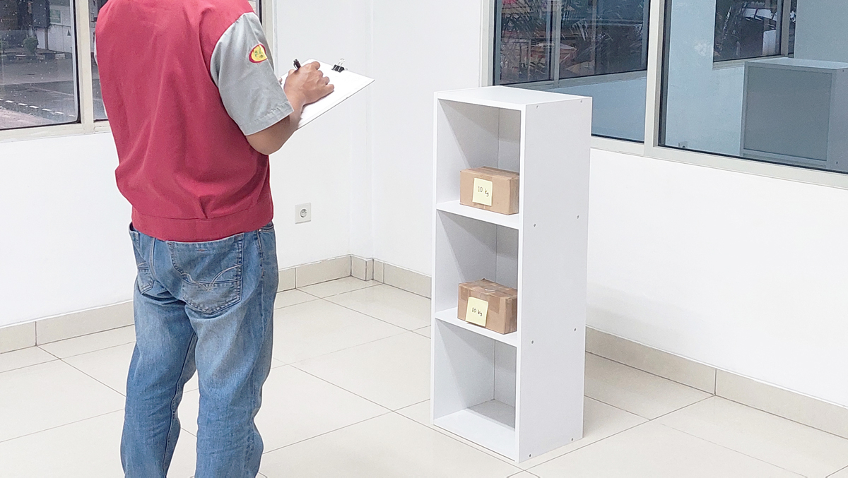 山善では棚板の強度や耐荷重などで独自の厳しい基準を設けて、第三者機関や社内での品質試験を実施し、安心してお使いいただける製品をお届けしています。