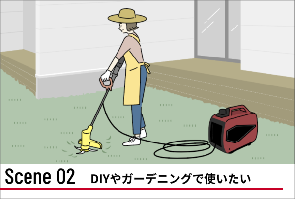 DIYやガーデニングなど、比較的高い電力の器具などを利用するシーンでは、高出力なスタンダードタイプがオススメです。