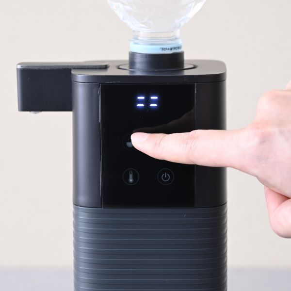 2Lまでのペットボトルを使用できます。ただし500ml以上のペットボトル使用の際は、転倒する恐れがありますので、確実にベースを取り付けて使用してください。